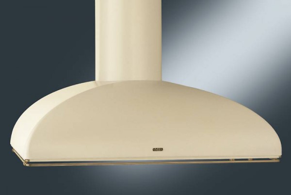 Smeg KSE89PO9 — настенная вытяжка с необычной округлой формой корпуса, выполненная в кремовом цвете. Для модели характерна профессиональная работа. Длительная гарантия подчеркивает надежность и долговечность вытяжки.