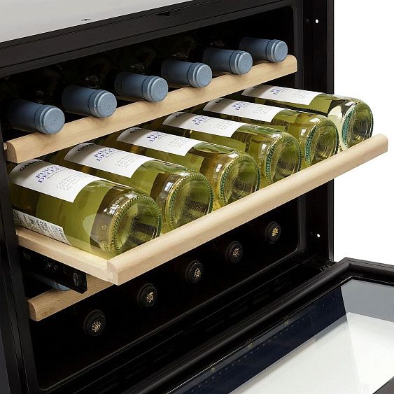 Модель BADEN 45/24 BL имеет объем 56 литров, что позволит разместить для хранения до 24 бутылок вина. Это дает вам возможность иметь под рукой запас любимых напитков на любой случай. Шкаф оснащен надежным компрессором, который обеспечивает стабильную температуру внутри камеры. Благодаря регулировке температуры в диапазоне от 5 до 20℃, вы можете настроить оптимальный температурный режим, что позволит создать идеальные условия для хранения как белых, так и красных вин. Двухслойное закаленное стекло Low-E с защитой от УФ-излучения надежно оберегает напитки от вредного воздействия солнечных лучей. Система No Frost и циркуляционное охлаждение гарантируют стабильный микроклимат, исключая риск изменения вкусовых качеств вина. Удобное сенсорное управление Touch Control с интуитивно понятным LED-дисплеем и индикатором температуры делает эксплуатацию холодильника максимально комфортной. Внутри винного шкафа расположены 3 выдвижные полки из бука с телескопическими направляющими, которые обеспечивают плавное и бесшумное выдвижение полок, а так же предоставляют доступ к каждой бутылке. С ярким внутренним LED-освещением содержимое винного шкафа всегда под вашим контролем, а звуковой сигнал открытой дверцы предупредит о необходимости ее закрыть. Функция блокировки управления предотвращает случайные изменения настроек, что особенно актуально для семей с детьми.