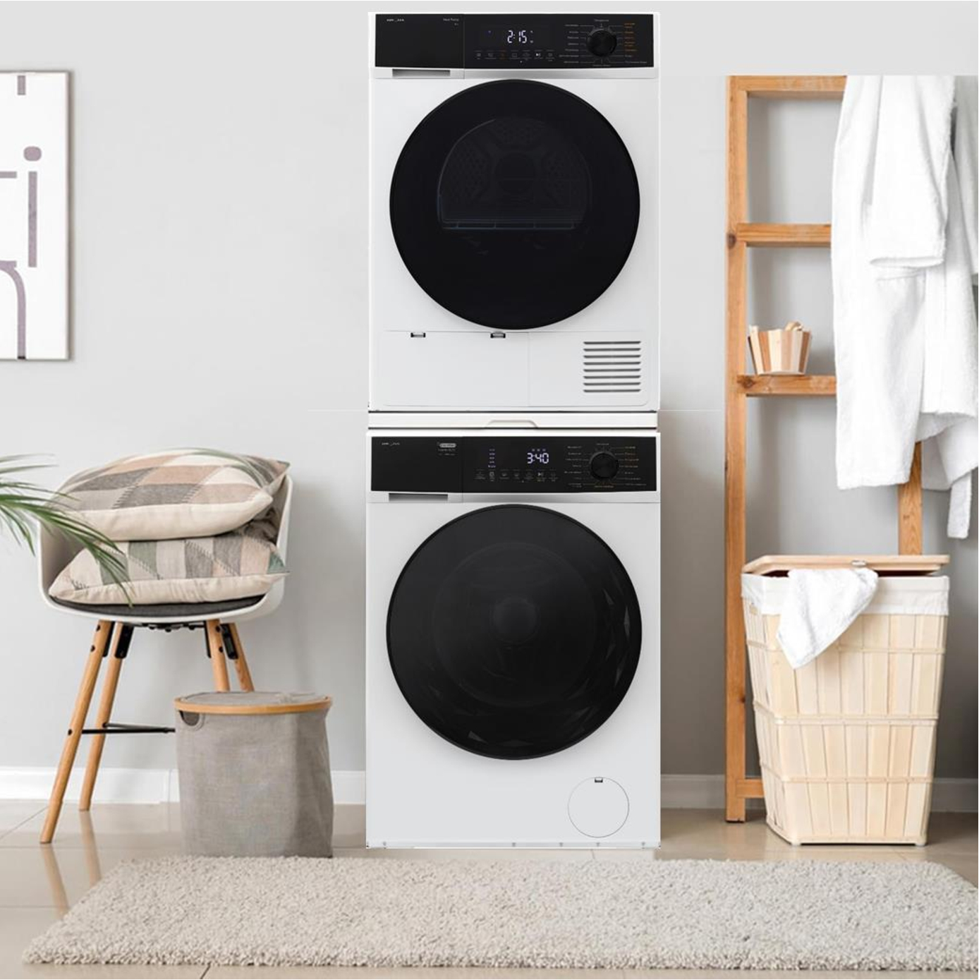 Комплект сушильная машина + стиральная машина + выдвижная полка Krona (RHENE MAX WHITE 8K DM + RHENE MAX WHITE 1400 9K WM + Krona KRCK001)